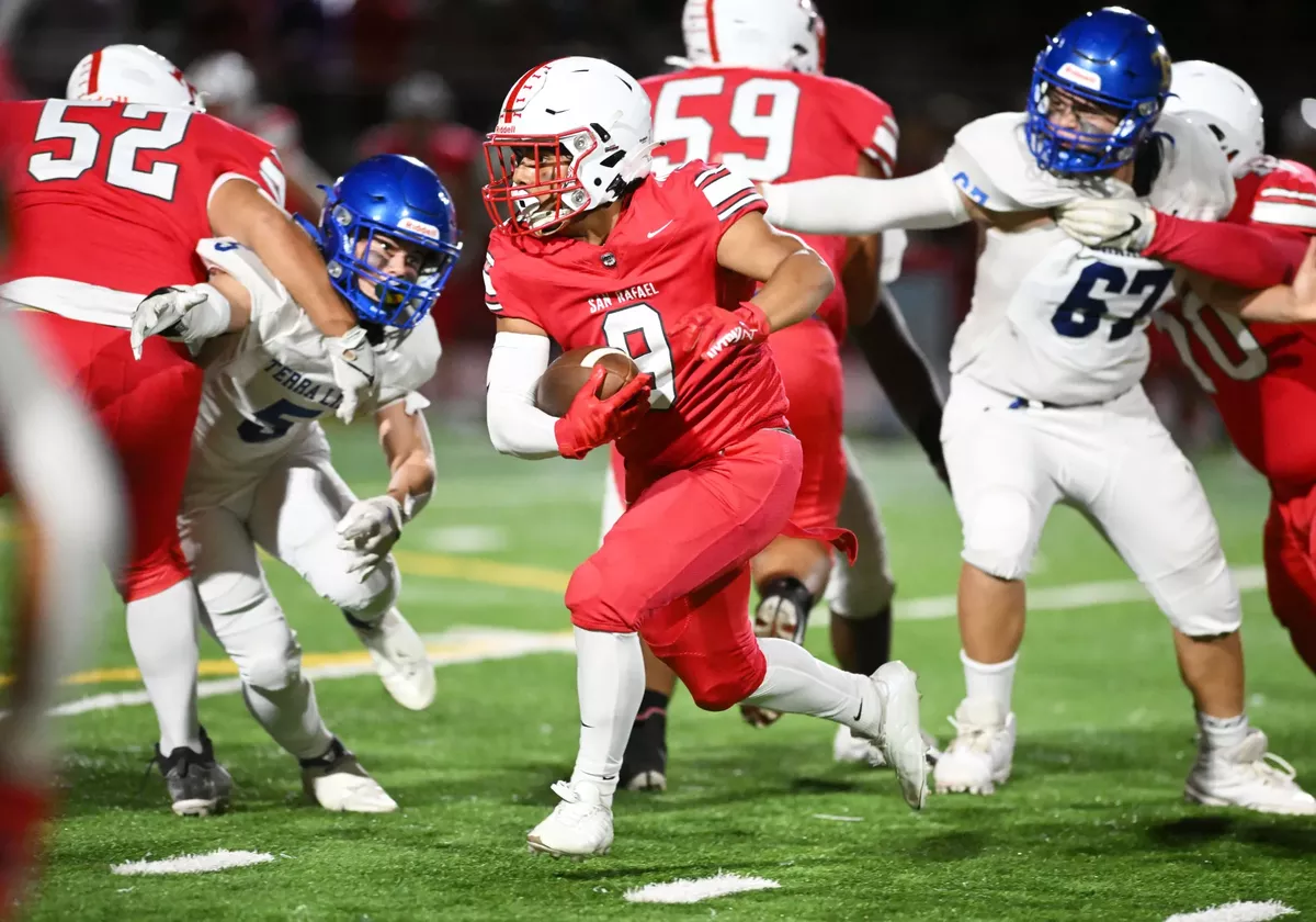 Sam Gonzalez (9) showed his speed on the field running the ball - 83 yards for a game opening touchdown and 86 yards to the TL 1 yard line.