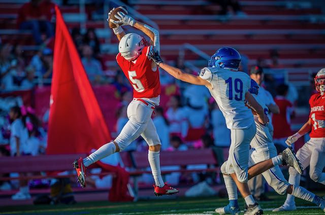 Oscar Jordan (20) caught a pass from Quinn Madden for the second touchdown of the day.