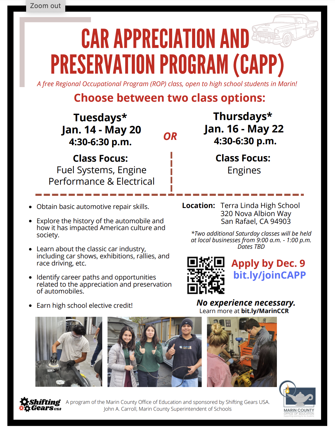 Are you interested in cars or construction? Spring 2024 ROP Construction and CAPP applications are open until Dec. 9, 2024!