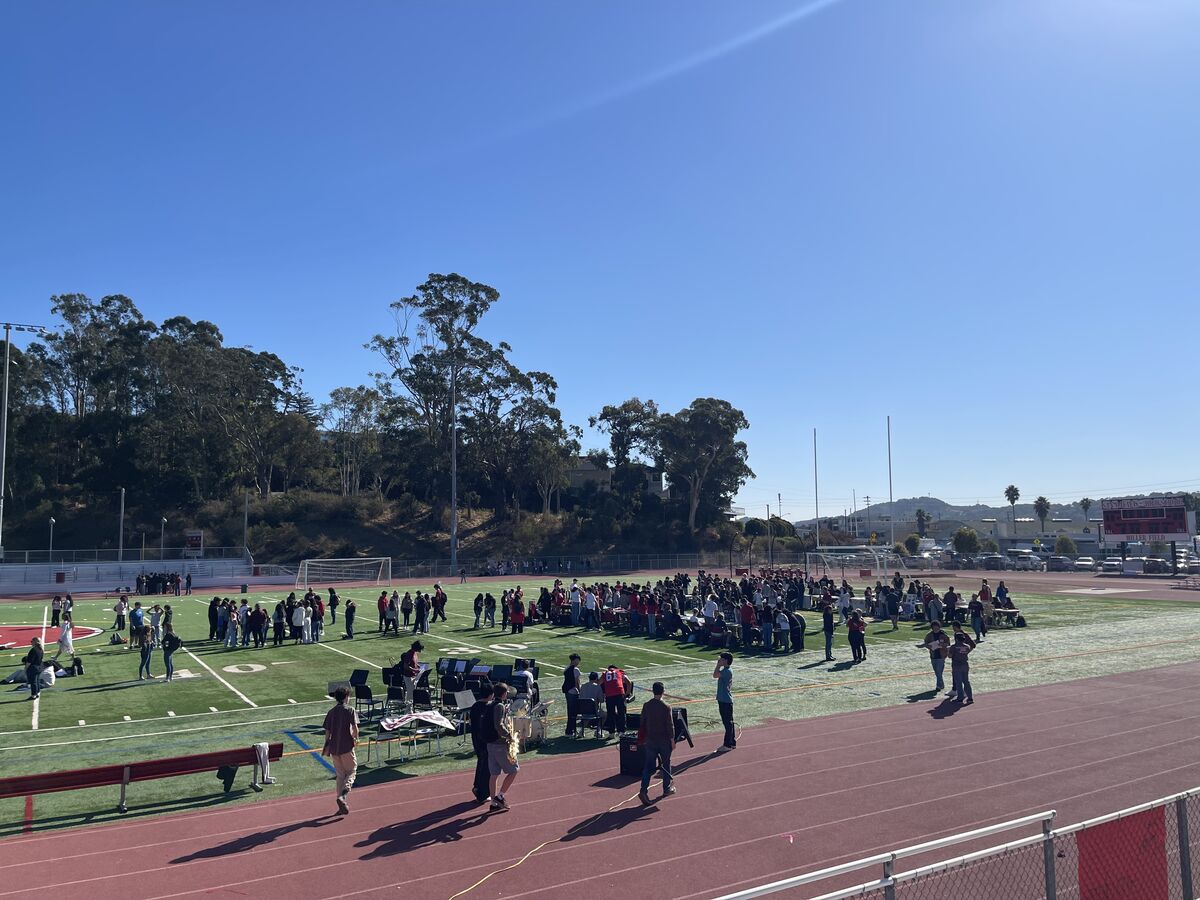 We welcomed over 400 8th graders this Friday for a tour.  They got to see what SRHS is all about and got to experience the Bell Game Rally!  The Bell Game is the rival game against Terra Linda High School.  They finished off the day with an activities showcase where they got to listen to the Jazz Combo while they played games and got to visit all the different clubs and sports team SR has to offer.
