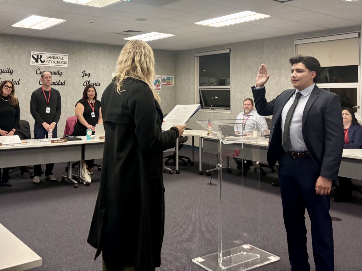 We are pleased to announce that Kennedy Rodas-Dias was appointed to the SRCS Board of Education on Nov. 18, filling the vacant seat for Trustee Area 5. (Pictured right being sworn into office by San Rafael City Clerk Lindsay Lara.)